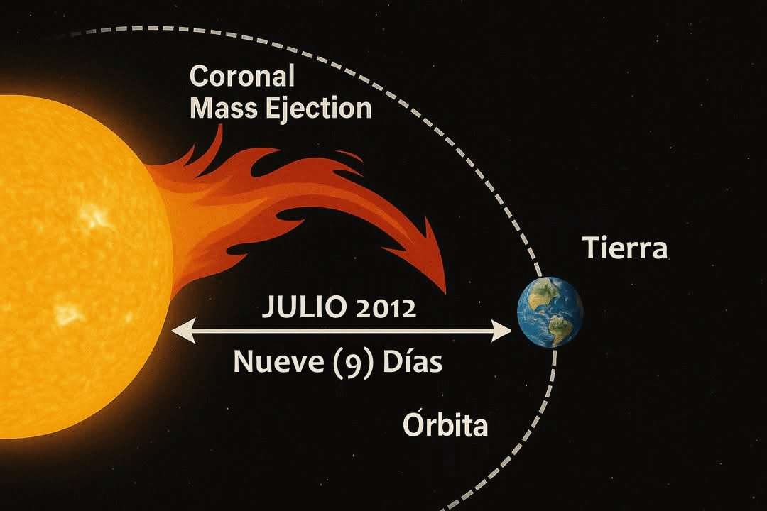 En julio de 2012, casi lo perdimos todo. Una eyección de masa coronal (EMC) de clase Carrington, una de las más potentes jamás registradas, surgió del Sol, moviéndose a más de 11 millones de kilómetros por hora, y rozó la Tierra por tan solo 9 días de viaje orbital. Para la persona promedio, eso suena a casi un accidente. ¿Pero en términos cósmicos? Fue un roce. La EMC cruzó la trayectoria orbital de la Tierra... simplemente aún no habíamos llegado. De haberlo hecho, nos habríamos enfrentado a un apagón global, con las redes eléctricas inutilizadas, los satélites perdidos, el GPS borrado y la conexión a internet desconectada. El Dr. Daniel Baker de la NASA lo expresó claramente: «Aún estaríamos recogiendo los pedazos».